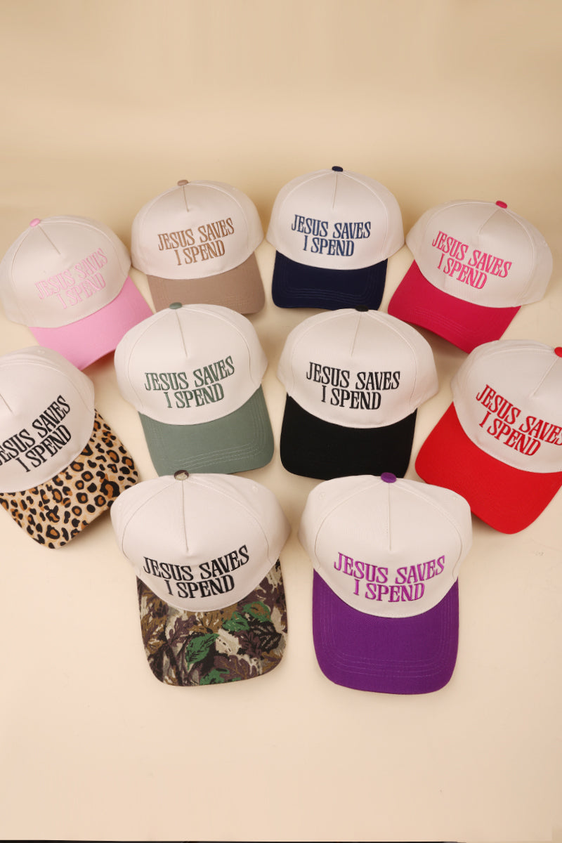 "JESUS SAVES I SPEND" TWO-TONE CANVAS